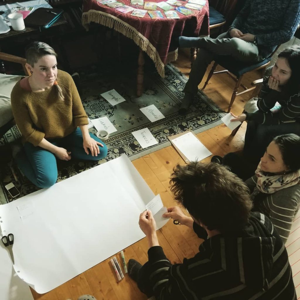 A Joanna Macy által létrehozott The Work That Reconnects mélyökológia csoportmunka módszere alapján 2010 óta vezetek csoportokat. E munka célja megismerni és feltárni sérülékeny ökológiai rendszerünk iránti nehéz érzéseinket és építő cselekvésbe fordítani azokat. A The Work That Reconnects módszertant Angliában tanultam Anna Mc Ivortól, majd Joanna Macytől.